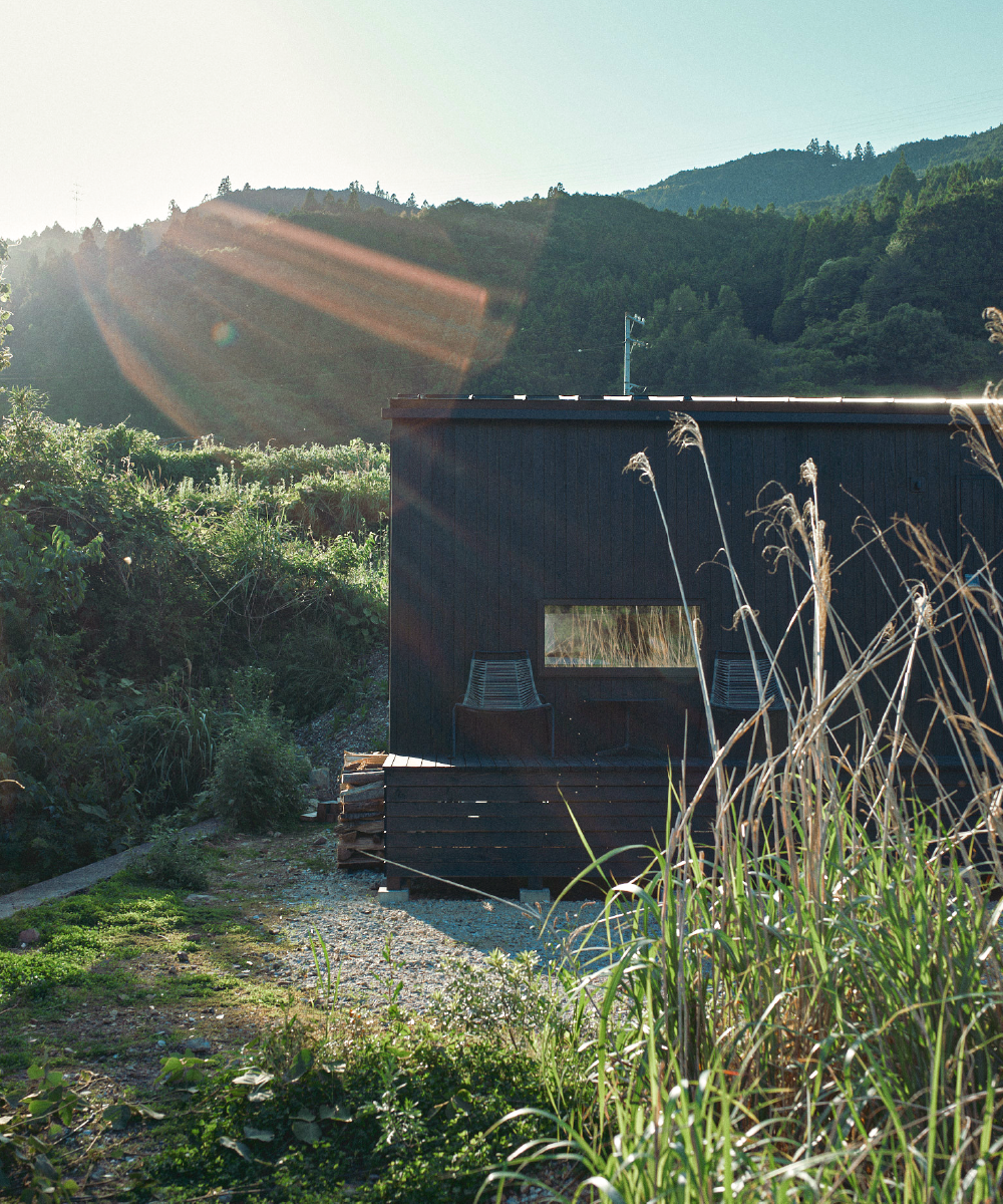 高知県高知市中心部から車でわずか35分。一級河川・物部川のほとりに佇む2棟の木造トレーラーハウス。電気と水を、最新のテクノロジーと自然エネルギーの循環でまかなう「オフグリッド」な施設です。