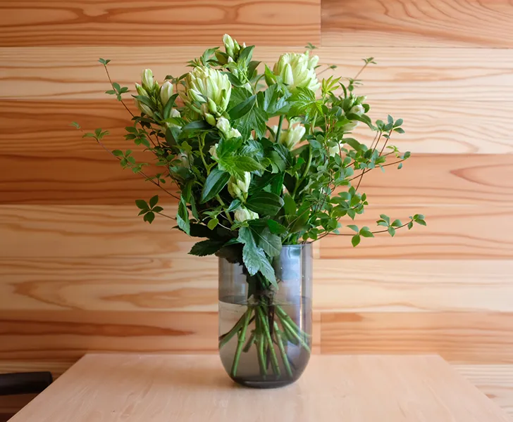 緑に囲まれた中庭を持つ、静謐なプライベート空間。アセビの花言葉「あなたと二人で旅をする」の通り、パートナーと語らい、絆を深めるのにふさわしい落ち着いた雰囲気が漂います。木々の呼吸を感じながら読書にふけるなど、おひとりでの優雅なリトリートにも最適。